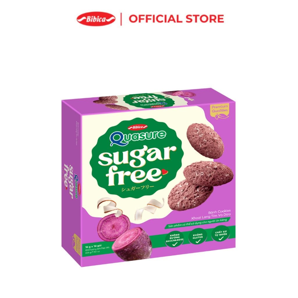 Combo Mix 3 Vị Bánh Ăn Kiêng Không Đường Quasure Sugar Free Bibica 240gr - Khoai Lang Tím; Yến Mạch; Ngũ Cốc Hạt Chia